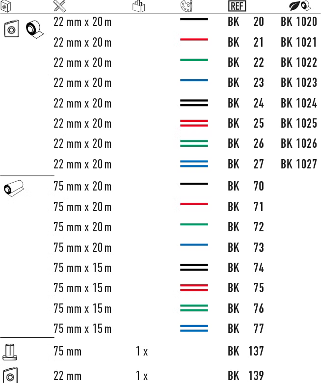 Опаковка: Кодът BK 75 се отнася за голяма ролка с дължина 50 метра и ширина 75 мм.