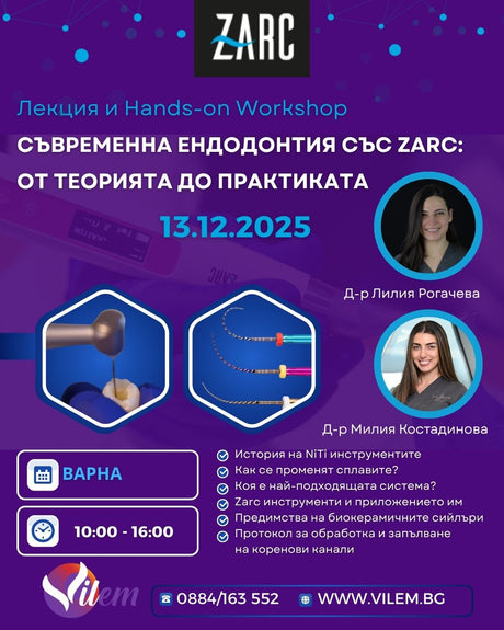 Промоционална ценаот 391.16 лв (200.00 EUR) Редовна цена 488.95 лв (250.00 EUR)Цена за единица (0.00 EUR)НесъществуващКурс „Съвременна ендодонтия със Zarc: от теорията до практиката“