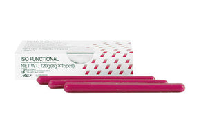 Термопластичен кантиращ восък на пръчки за функционални отпечатъци. Благодарение на уникалните си бавни втвърдяващи свойства, ISO Functional позволява изработването на изключително точни функционални отпечатъци.