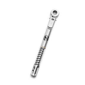 Прецизен контрол на въртящия момент (торк): Тресчотката позволява точно и консистентно прилагане на препоръчителния въртящ момент (торк) за затягане на протетичните компоненти. Това елиминира риска от недостатъчно затягане, което може да доведе до разхлабване на винта, или пренатягане, което може да увреди компонентите или импланта.